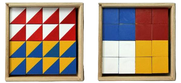 Эти узоры напоминают контуры различных предметов, картин, которым дети любят давать названия. Сначала учатся по узорам-заданиям складывать точно такой же узор из кубиков. Затем ставят обратную задачу: глядя на кубики, сделать рисунок узора, который они образуют. И наконец, третье - придумывать новые узоры из 9 или 16 кубиков, каких еще нет в книге, т.е. выполнить уже творческую работу. Используя разное число кубиков, различающихся по цвету и форме, можно изменять сложность заданий в необыкновенно широком диапазоне.