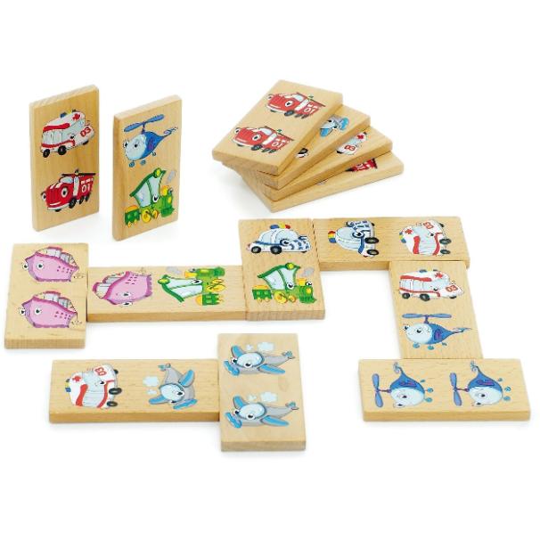 Для того, чтобы детям было легко и интересно играть, на костяшках домино нарисованы разные виды транспорта.