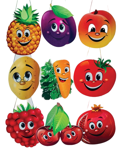 В данном наборе 9 костюмов с изображением фруктов, овощей и ягод. В набор входят – вишня, персик, малина, слива, морковь, картофель, ананас, помидор, гранат