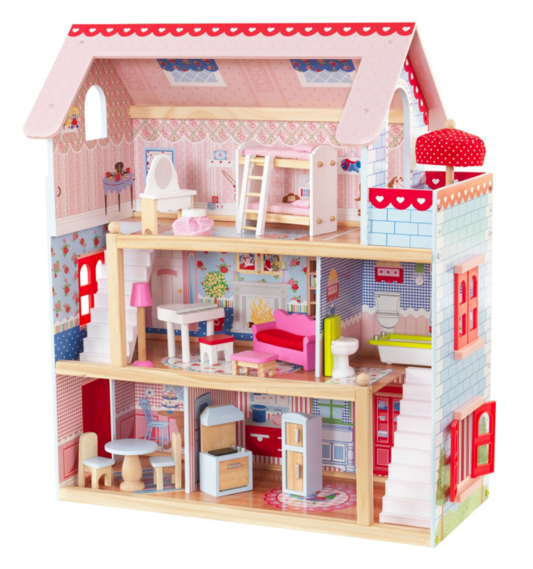 Задняя стенка дома глухая, а лицевая часть полностью открыта, позволяя ребёнку играть в нём.