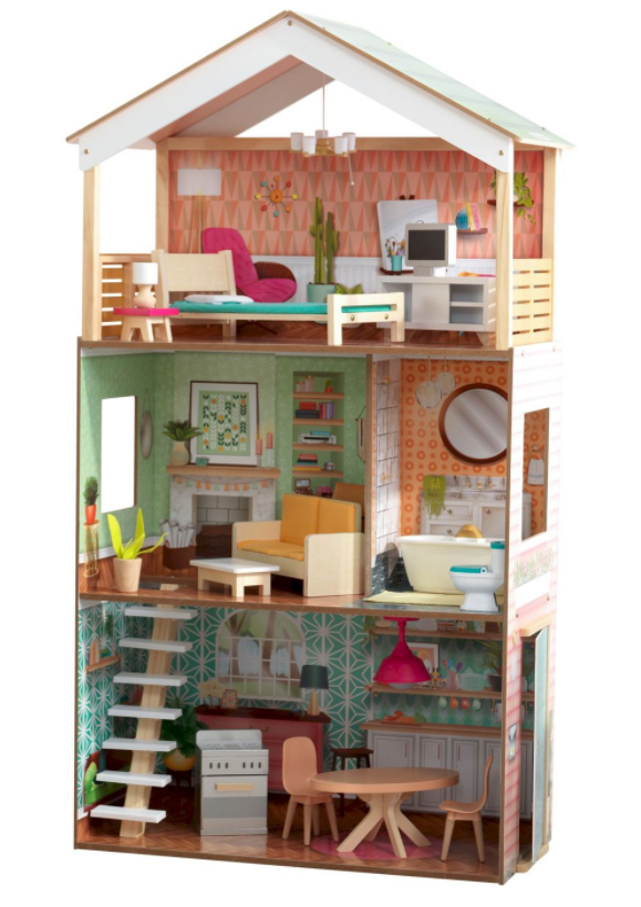 Кукольный домик имеет три уровня с 4 комнатами.