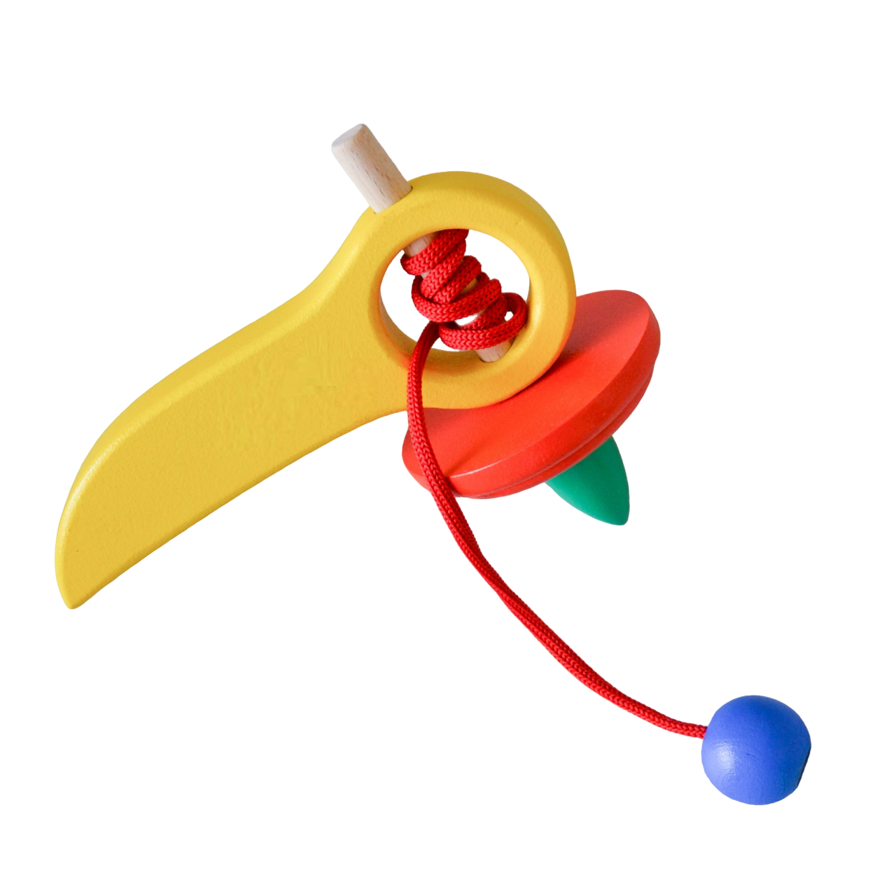 Волчок имеет специальную ручку и веревочку для запуска.