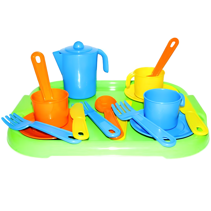 Красивый набор детской посуды. Детская посудка выполнена из пластмассы и абсолютно безопасна.