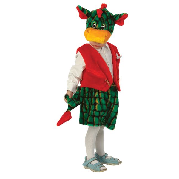 Меховой костюмчик Дракончик Дэзи состоит из шапочки-дракона, шортиков с хвостиком и красной жилетки.