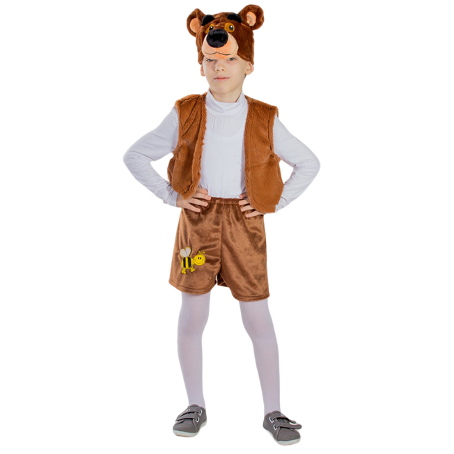 Отличный карнавальный наряд косолапого мишки. Этот бурый симпатяга медвежонок выглядит очень дружелюбно и мило, с таким сразу захочется подружиться другим ребятам.
