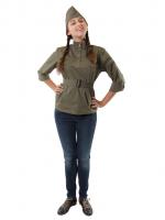 Ее дизайн максимально приближен к фасону гимнастерки времен 2 мировой войны. Оригинальная форма пилотки гарантирует удобную посадку. Гимнастерка застегивается на пуговицы и перехватывается на талии ремнем.